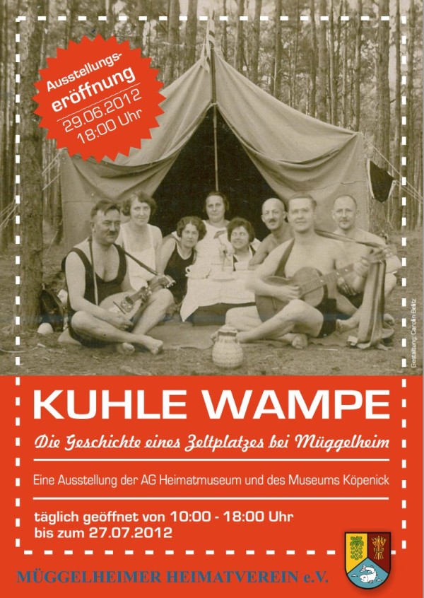 Vom historischen Zeltplatz "Kuhle Wampe" am Großen Müggelsee, an dem die ersten Zelte 1913 standen, sind kaum noch Spuren zu sehen. Nur die Reste der Wasch- und Toilettenanlage ragen noch aus der Erde. Seit Donnerstag, dem 18.04.2013 steht an der Bucht Kuhle Wampe am Großen Müggelsee, an dem historischen Ort, eine Erinnerungstafel an den Arbeiterzeltplatz "Kuhle Wampe". Ermöglicht wurde das durch die Hilfe der Revierförsterei Müggelheim und die Unterstützung des Forstamtes Köpenick. Ein Dank den Männern des Waldes. Am Nachmittag des 18.04. wurde diese Tafel in Anwesenheit von ca. 50 Gästen feierlich eingeweiht. Darunter waren Vertreter des Kulturamtes, des Heimatverein Köpenick, des Forstes, des Kuhle Wampe Motorradclubs und Nachfahren der Zeltler. Nun ist der Verwirrung nach dem Standort des historischen Zeltplatz ein Ende gesetzt und bei einem Spaziergang am Uferweg wird man an ihn erinnert.