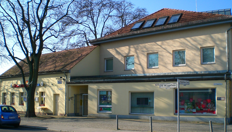 Auf der Hofstelle Nr. 16 wurde ein zweigeschossiges Geschäftshaus in den 1930-iger Jahren gebaut. In ihm befand sich bis in die 80-ziger Jahre eine Drogerie (heute Blumenladen) und eine Fleischerei (heute Bäckerei). In Nr. 17 befand sich ein Wohnhaus, in Nr. 17a eine Bäckerei. Beide wurden durch einen Zwischentrakt verbunden. In dem Gebäude befand sich in den 1970-80-ziger Jahren das Konsum-Cafe Müggelheim.