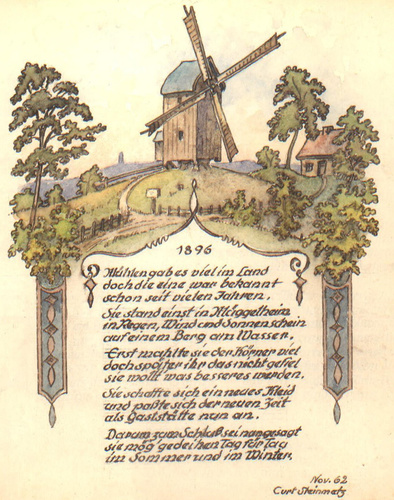 Der zweite Teil des Satzes bezieht sich darauf, dass Friedrich dem neu gegründeten Dorf "Müggelheim" eine Mühle zusichert, mit der gleichzeitigen Verpflichtung für die "Colonisten", ihr Getreide nur in dieser Mühle mahlen zu lassen. Man einigte sich, eine Bockwindmühle zu bauen. Als Ort für die Mühle wurde das Westufer der Großen Krampe gewählt, das, bedingt durch die Verschiebungen der Eiszeit, eine etwa 30 m hohe Erhebung bildet, später auch Mühlenberg genannt. In einer Karte der Feldflur von Müggelheim 1856 ist der Standort der Mühle eingezeichnet.