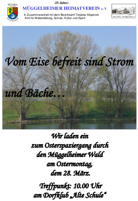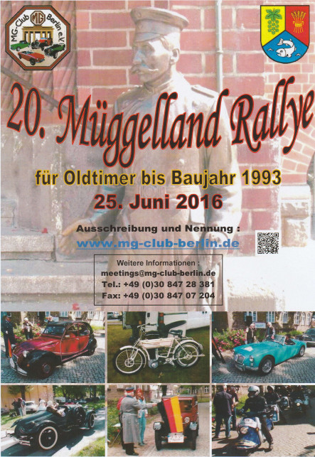 Am 25. Juni 2016 findet die 20. Müggelland-Rallye vom mg-club-berlin für Oldtimer bis Baujahr 1993 statt. Sie sind herzlich eingeladen die Oldtimer auf dem Anger zu besichtigen.