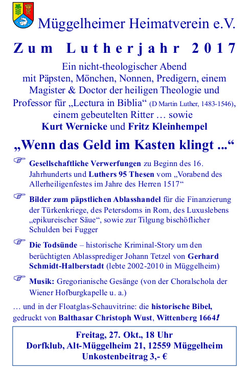 Der Müggelheimer Heimatverein präsentiert einen wissenschaftlich fundierten Vortrag über den historischen Hintergrund und den Wahrheitsgehalt über das Anschlagen von Luthers Thesen.